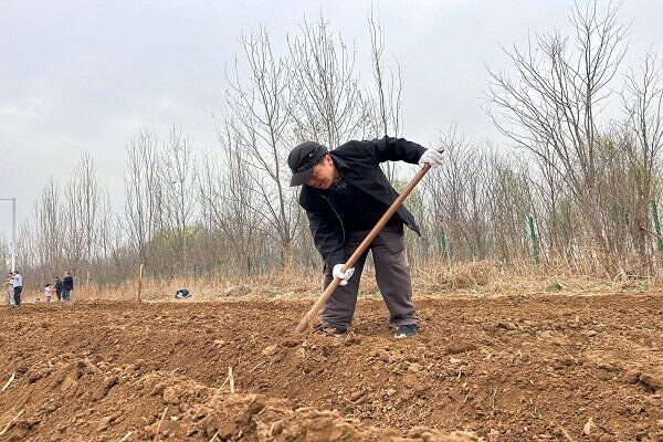 “先把自家的地垄耙起来,然后把地搂平!”在种植基地,不时传来李怀生指导大家的声音,各单位积极响应,热火朝天地抡起耙子等农具,在各自地块开始了种植前的准备工作。当李怀生请来种植基地的技术人员时,大家纷纷上前认真听讲。技术人员向大家详细讲解了针对不同种子如何掌握挖坑深度、种植方式、覆膜等需要注意的事项后,大家个个干劲十足,全身心地投入到播种当中。种植完成后,大家打开浇灌的水龙头,咕咕的水流进了耙好的一块块地畦里,这一刻,大家共同的期待一定是在这片土地上,能够看到这些绿色蔬菜的成长与丰收。